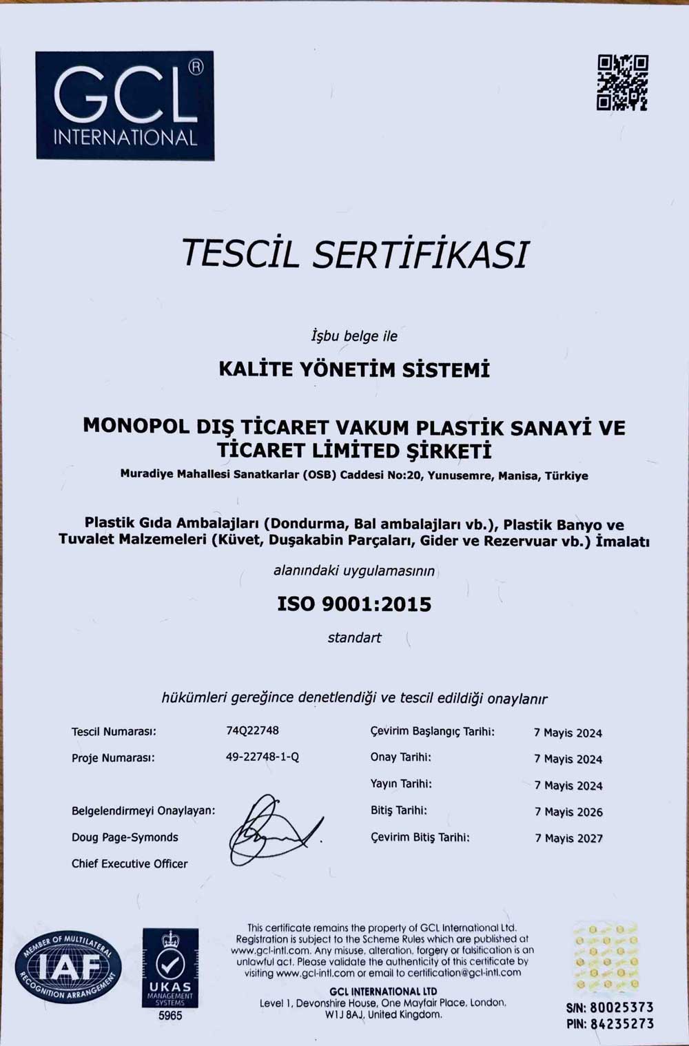 GIDA AMBALAJ POLİTİKAMIZ: